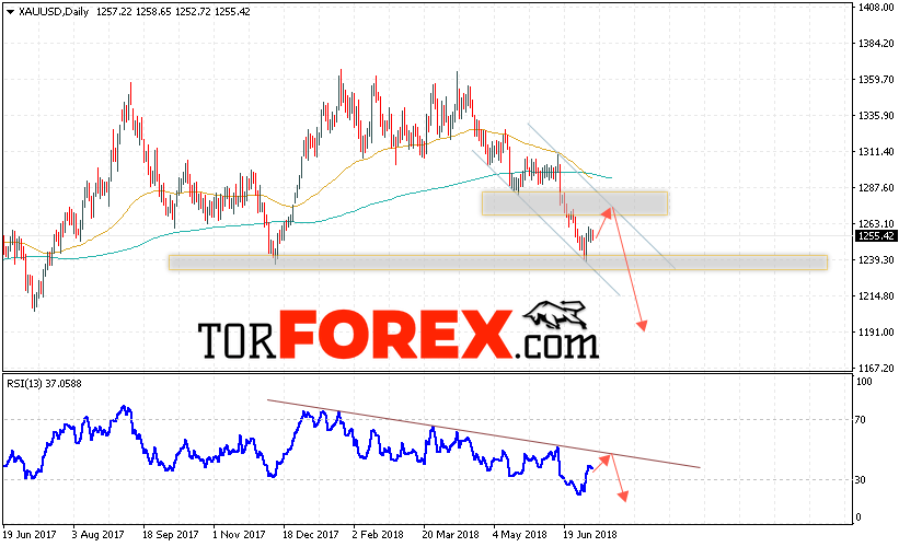 Таким образом, XAU/USD прогноз цен Золота на 9 — 13 июля 2018 предполагает попытку теста уровня сопротивления вблизи области 1270 и продолжения падения цен на Золото с целью ниже уровня 1190, в пользу падения выступит тест линии тренда на индикаторе относительной силы, отменой варианта падения Золота станет пробой уровня 1285, что укажет на продолжение роста в область выше уровня 1315.