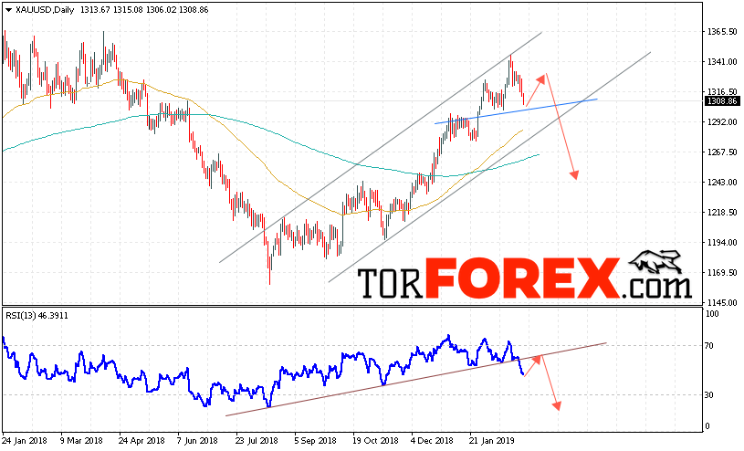 Таким образом, XAU/USD прогноз цен Золота на неделю 4 — 8 марта 2019 предполагает попытку теста уровня сопротивления вблизи области 1325. Затем продолжение падения цен на Золото с целью ниже уровня 1245. В пользу снижения выступит тест линии тренда на индикаторе относительной силы. Отменой варианта падения Золота станет сильный рост и пробой уровня 1345. Это укажет на продолжение роста котировок в область выше уровня 1365.