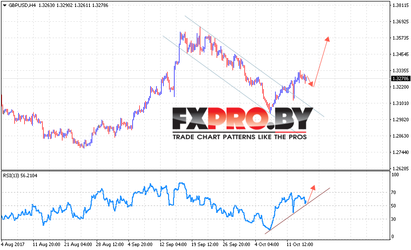 Таким образом, GBP/USD прогноз Фунт Доллар на 17 октября 2017 предполагает попытку отскока от уровня поддержки с целью роста выше 1.3550, дополнительным сигналом выступает тест линии поддержки на индикаторе относительной силы, отменой варианта роста станет пробой уровня 1.2970.