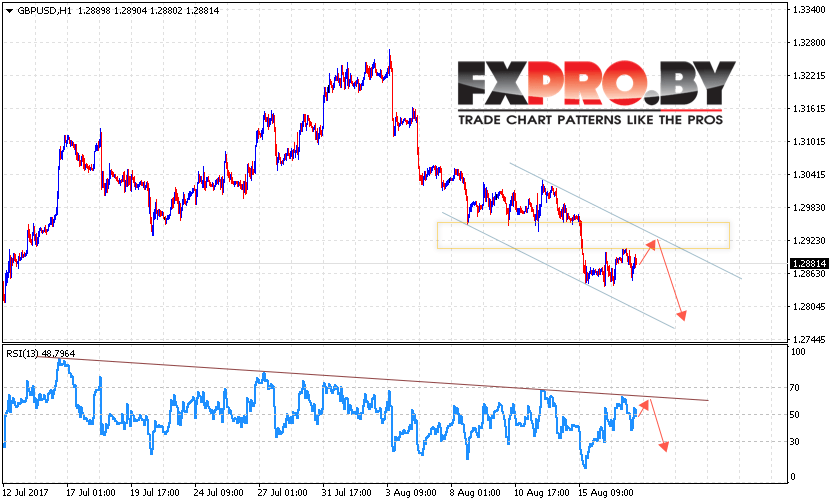 Таким образом, GBP/USD прогноз Фунт Доллар на 18 августа 2017 предполагает попытку коррекции в область верхней границы канала вблизи уровня 1.2925, откуда стоит ожидать продолжения падения пары с целью ниже уровня 1.2800.