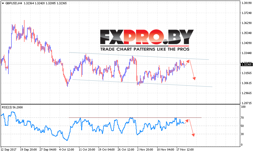 Таким образом, GBP/USD прогноз Фунт Доллар на 22 ноября 2017 предполагает попытку теста верхней границы нисходящего канала и продолжения падения с целью на уровне 1.3080, откуда стоит ожидать продолжения падения, дополнительным сигналом в пользу снижения Британского Фунта выступит тест линии сопротивления на индикаторе относительной силы, отменой варианта снижения пары станет пробой уровня 1.3350.