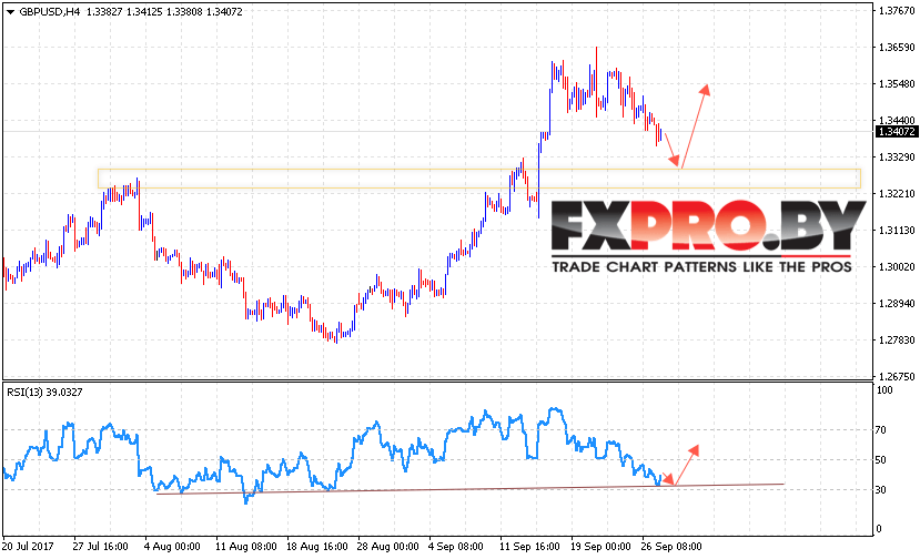 Таким образом, GBP/USD прогноз Фунт Доллар на 28 сентября 2017 предполагает попытку снижения пары в область поддержки вблизи уровня 1.3300, откуда стоит ожидать отскок и рост пары выше уровня 1.3550, дополнительным сигналом в пользу роста Фунта против Доллара США выступит тест линии тренда на индикаторе относительной силы.