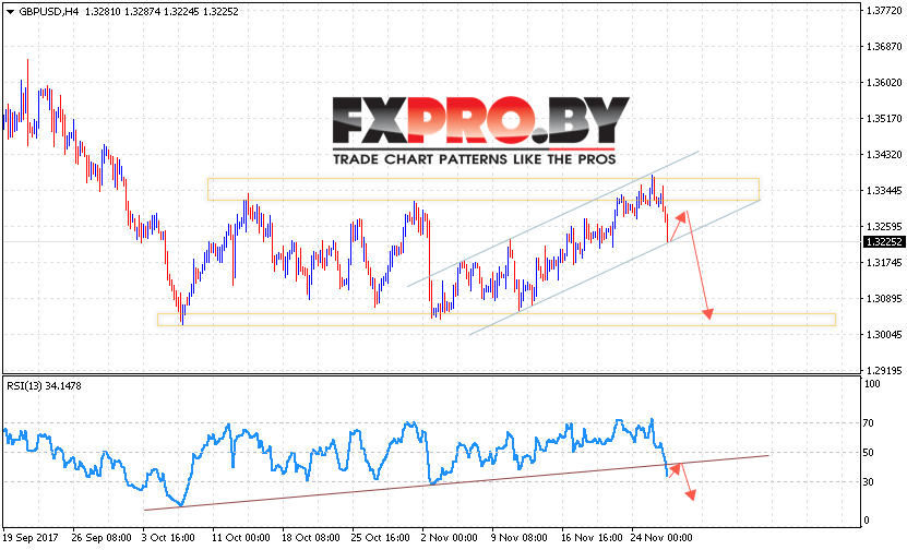 Таким образом, GBP/USD прогноз Фунт Доллар на 29 ноября 2017 предполагает попытку теста уровня 1.3260 и продолжения падения с целью на уровне 1.3060, дополнительным сигналом в пользу снижения Британского Фунта выступит тест линии сопротивления на индикаторе относительной силы, отменой варианта снижения пары станет пробой уровня 1.3420.