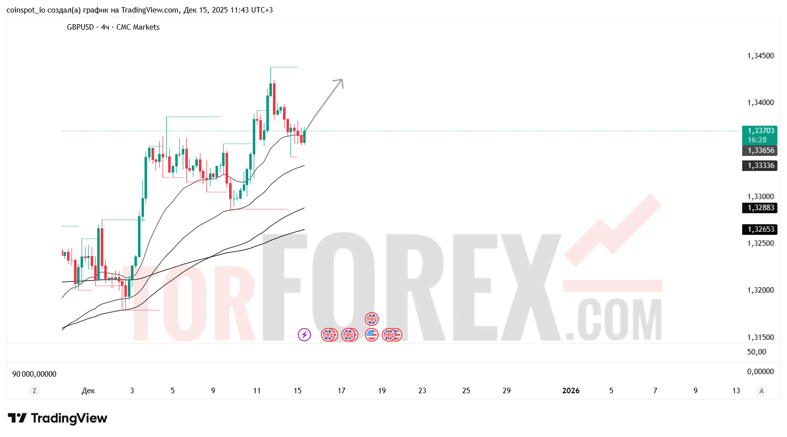 На 16 декабря 2025 года GBP/USD демонстрирует признаки краткосрочного восстановления. Основной сценарий — рост к 1.3400–1.3425 USD при пробое сопротивления. Альтернативный сценарий — снижение к 1.3312–1.3280 USD при отказе от уровня 1.3385 USD.