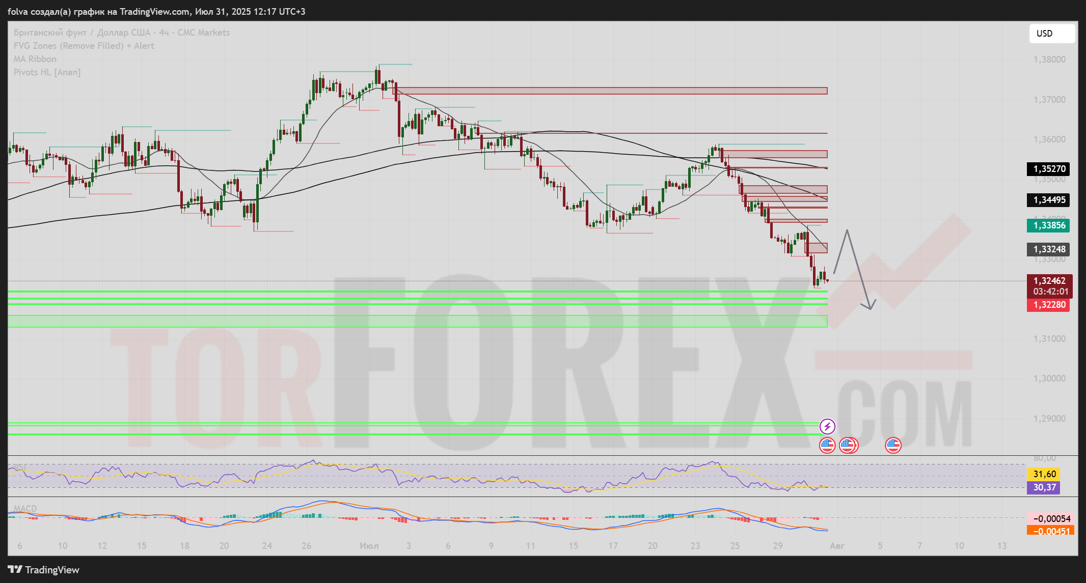 Целевые уровни: 1.32780, 1.32280 и ниже до 1.31450.