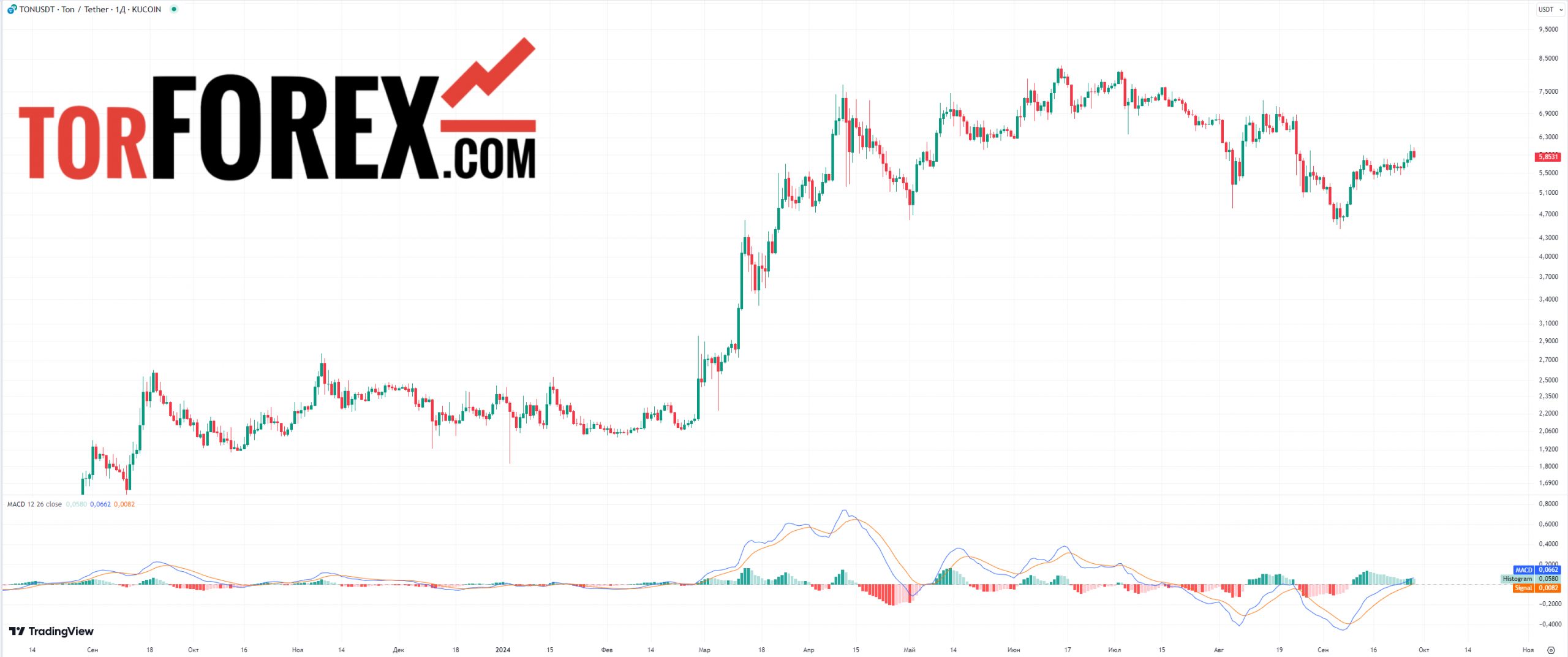 Прогноз цены Ton Coin на год с индикатором MACD