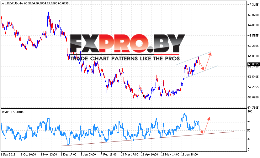 Таким образом, USD/RUB прогноз курса Доллара к Рублю на 13 июля 2017 предполагает попытку коррекции в область нижней границы восходящего канала на уровне 59.50, откуда стоит ожидать отскок и продолжения роста котировок пары выше уровня 61.40.