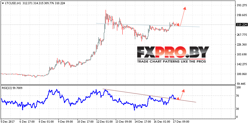 Таким образом, Курс Litecoin (LTC/USD) прогноз на 18 декабря 2017 предполагает попытку теста пробитой линии «Шеи» разворотной модели вблизи 300, откуда стоит ожидать отскок и продолжения роста в область выше уровня 380, дополнительным сигналом в пользу роста Litecoin выступит тест линии поддержки на индикаторе относительной силы.