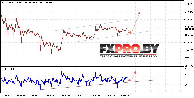 Таким образом, Курс Litecoin (LTC/USD) прогноз на 19 декабря 2017 предполагает попытку теста нижней границы канала вблизи вблизи 295, откуда стоит ожидать отскок и продолжения роста в область выше уровня 360, дополнительным сигналом в пользу роста Litecoin выступит тест линии поддержки на индикаторе относительной силы.