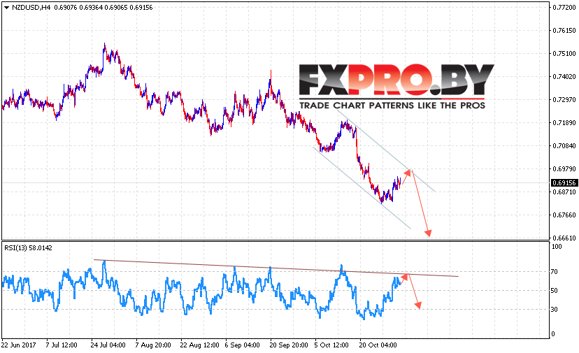 Таким образом, Форекс прогноз и аналитика NZD/USD на 3 ноября 2017 предполагает попытку развития коррекции в область верхней границы канала на уровне 0.6960, откуда стоит ожидать продолжения падения ниже 0.6750, отменой варианта падения NZD/USD станет сильный рост и пробой области 0.7035.