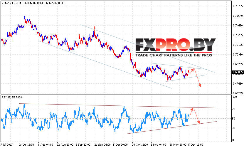 Таким образом, Форекс прогноз и аналитика NZD/USD на 6 декабря 2017 предполагает попытку теста уровня 0.6890 и продолжения падения в область ниже уровня 0.6730, дополнительным сигналом в пользу падения выступит тест линии тренда на индикаторе относительной силы, отменой варианта падения NZD/USD станет пробой уровня 0.6990.