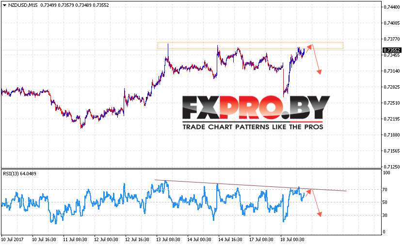 Таким образом, NZD/USD прогноз Новозеландского Доллара на 19 июля 2017 предполагает попытку отскока от уровня сопротивления и падения в область ниже уровня 0.74, дополнительным сигналом выступает тест линии тренда на индикаторе относительной силы.