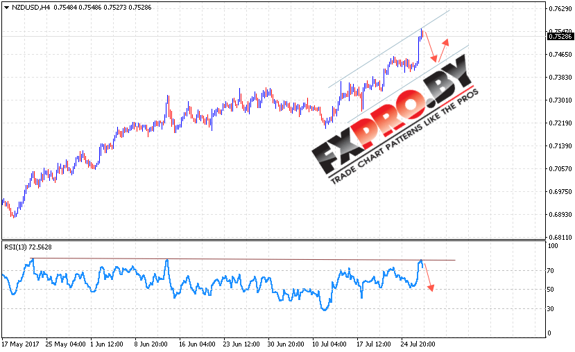 Таким образом, NZD/USD прогноз Новозеландского Доллара на 28 июля 2017 предполагает попытку падения в область нижней границы восходящего канала на уровне 0.7440, откуда стоит ожидать отскок и продолжение роста пары.