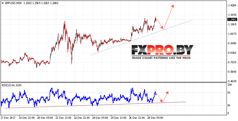 Таким образом, Курс Ripple (XRP/USD) прогноз на 29 декабря 2017 предполагает попытку теста линии поддержки вблизи области 1.09, откуда стоит ожидать отскок и продолжения роста в область выше уровня 1.4280, дополнительным сигналом в пользу роста Ripple выступит тест линии тренда на индикаторе относительной силы.