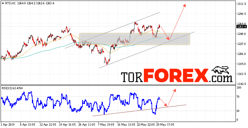 Котировки индекса РТС торгуются на уровне 1263.4 и продолжают движение в рамках роста и восходящего канала. Скользящие средние указывают на наличие краткосрочной восходящей тенденции. В рамках прогноза стоимости биржевого индекса РТС на 31 мая 2019 стоит ожидать попытку коррекции и тест уровня поддержки вблизи области 1235.00. Откуда вновь стоит ожидать отскок и продолжение роста актива с потенциальной целью выше уровня 1310.00.