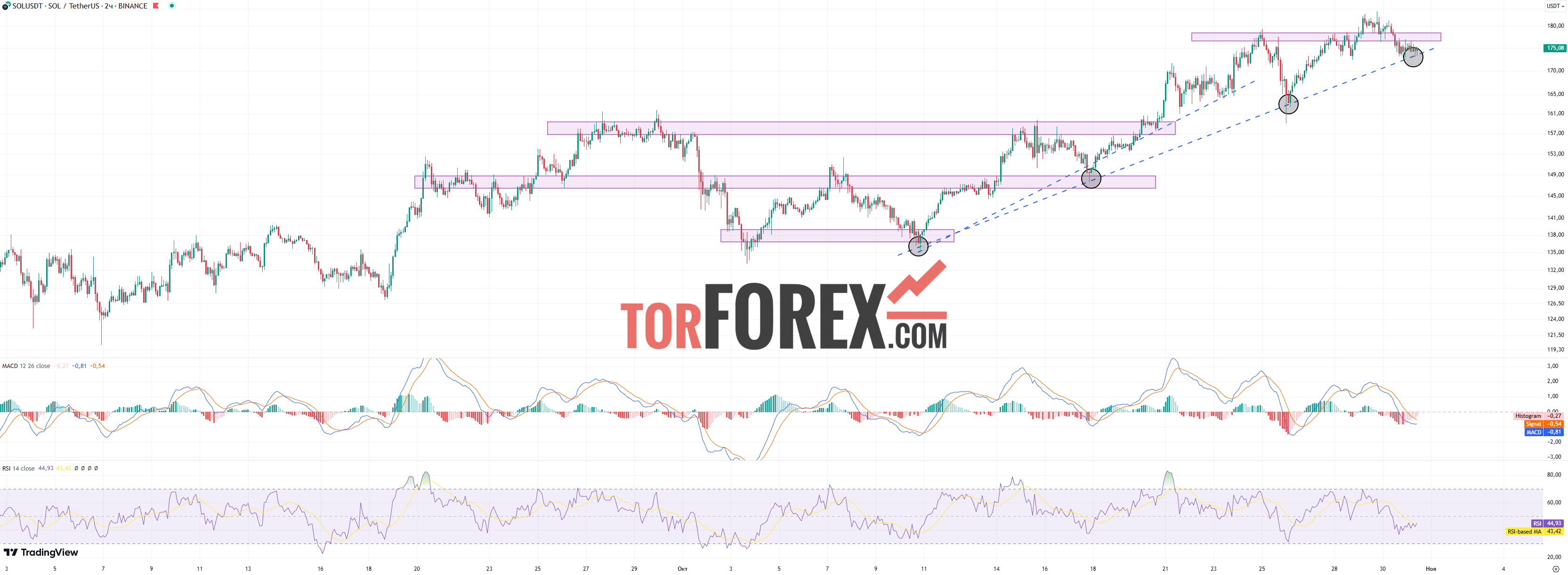 В ближайшем прогнозе ожидается рост SOL выше уровня сопротивления к целевым отметкам около $180, с возможностью продолжения восходящего движения.