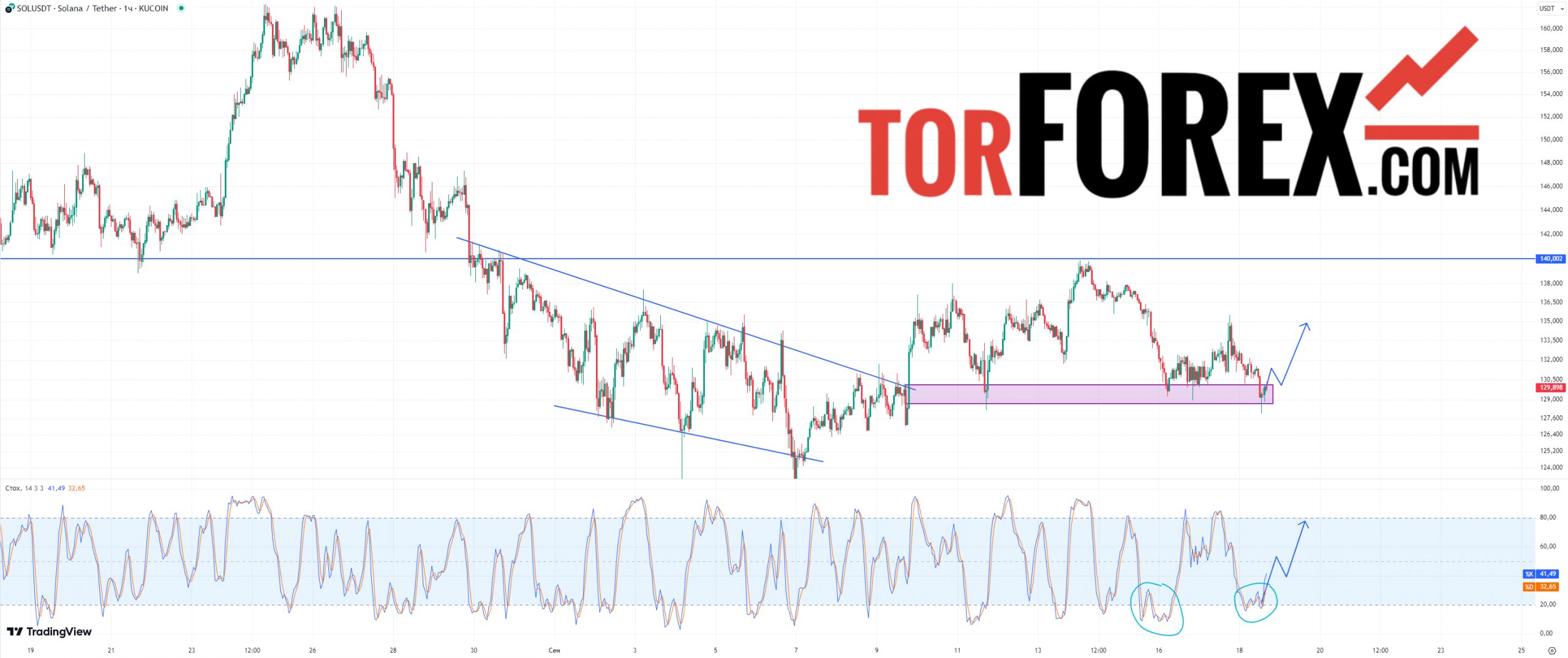 Еще одним подтверждением восходящего прогноза цены является перепроданность индикатора Stochastic. Индикатор показывает низкие значения от которых высоко вероятен рост, как в прошлый раз 16го сентября до уровня перекупленности.sol usdt прогноз на сегодня