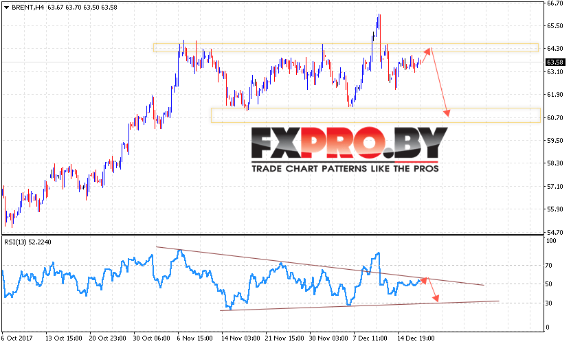 Таким образом, Аналитика и прогноз цен на нефть на 20 декабря 2017 предполагает попытку теста уровня 64.30, откуда стоит ожидать отскок и падение цены нефти с целью ниже уровня 60.70, отменой варианта падения цены нефти BRENT станет пробой уровня 65.90, что укажет на продолжение роста.