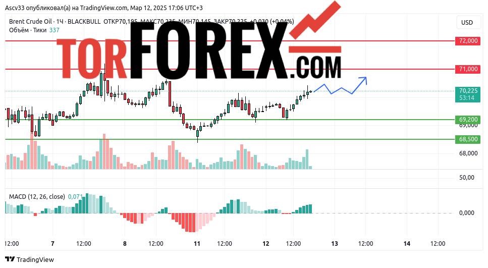 С высокой вероятностью Brent останется в диапазоне $68,50–$71,00 в течение следующих суток. Прорыв $71,00 вверх создаст условия для продолжения роста, тогда как снижение ниже $68,50 усилит коррекционное движение. Трейдерам рекомендуется внимательно следить за реакцией рынка у этих уровней, так как их пробой определит дальнейшее направление цены.
