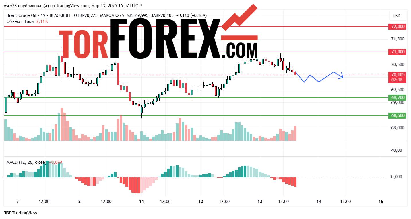 Скорее всего, Brent останется в пределах $69,20–$72,00 в течение следующих суток. Закрепление выше $72,00 станет сигналом к продолжению роста, тогда как снижение ниже $69,20 усилит коррекционные настроения. Трейдерам рекомендуется следить за динамикой цены вблизи этих уровней, так как их пробой определит дальнейшее движение котировок нефти.