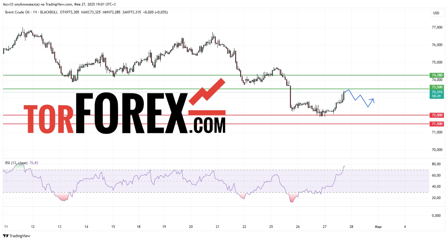 - Уровни сопротивления: $73,50, $74,28