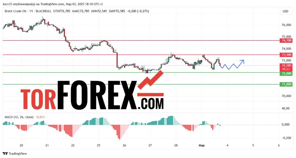 В ближайшие сутки нефть марки Brent, вероятно, продолжит движение в диапазоне $72,00–$73,50 за баррель. Трейдерам рекомендуется внимательно следить за реакцией цены на указанные уровни поддержки и сопротивления, поскольку их пробой может указать на дальнейшее направление движения.