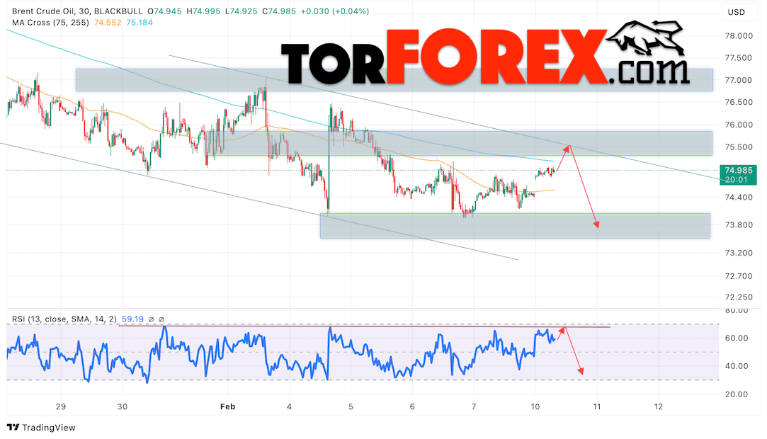 Таким образом, Нефть прогноз цены Brent на 11 февраля 2025 предполагает тестирование уровня сопротивления на отметки 75.45 долларов за баррель. Затем, ожидается продолжение падения нефти с целью ниже уровня 73.75. Отбой от линии сопротивления на индикаторе относительной силы (RSI) будет подтверждать падение стоимости актива. Альтернативный сценарий, который предполагает падение рост нефти Brent, наступит при пробое уровня 76.05, что укажет на дальнейший подъём котировок к уровню 79.85.