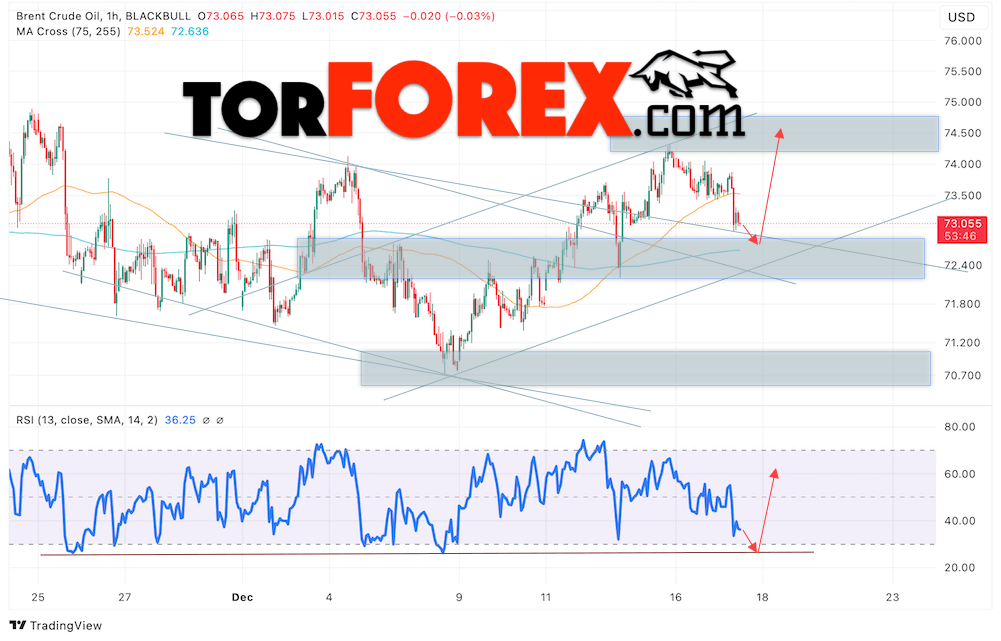 Таким образом, Нефть прогноз цены Brent на 18 декабря 2024 предполагает тестирование уровня поддержки на отметки 72.65 долларов за баррель. Затем, ожидается продолжение роста нефти с целью выше уровня 74.55. Отбой от бычьей линии тренда на индикаторе относительной силы (RSI) будет подтверждать росту стоимости актива. Альтернативный сценарий, который предполагает падение цены нефти Brent, наступит при пробое уровня 71.05, что укажет на дальнейшее падение котировок к уровню 67.25.