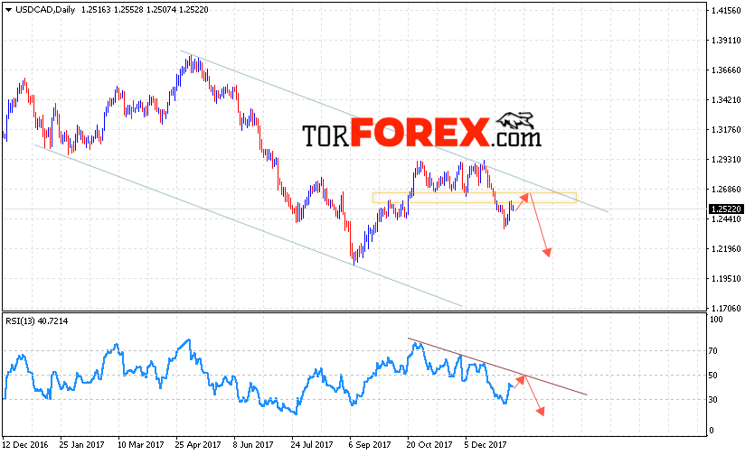 Таким образом, USD/CAD прогноз FOREX на 15 — 19 января 2018 предполагает попытку теста уровня сопротивления вблизи 1.2600 и продолжения падения с целью ниже 1.2200, дополнительным сигналом в пользу падения выступит тест линии тренда на индикаторе относительной силы, отменой варианта падения станет пробой области 1.2780, что укажет на продолжение роста пары.