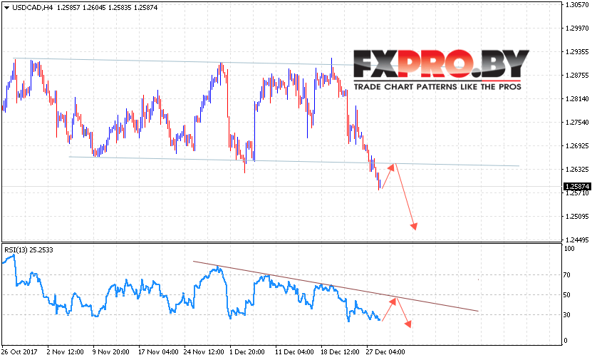 Таким образом, USD/CAD прогноз Канадский Доллар на 29 декабря 2017 предполагает попытку теста уровня 1.2640 и продолжения падения в область ниже уровня 1.2480, дополнительным сигналом в пользу падения выступит тест линии сопротивления на индикаторе относительной силы, отменой варианта падения Канадского Доллара станет пробой уровня 1.2700.