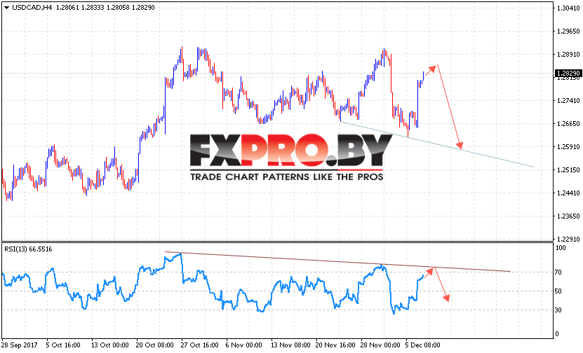 Таким образом, USD/CAD прогноз Канадский Доллар на 8 декабря 2017 предполагает попытку теста уровня 1.2840 и начала падения в область ниже уровня 1.2590, дополнительным сигналом в пользу падения выступит тест линии сопротивления на индикаторе относительной силы, отменой варианта падения Канадского Доллара станет пробой уровня 1.2910.