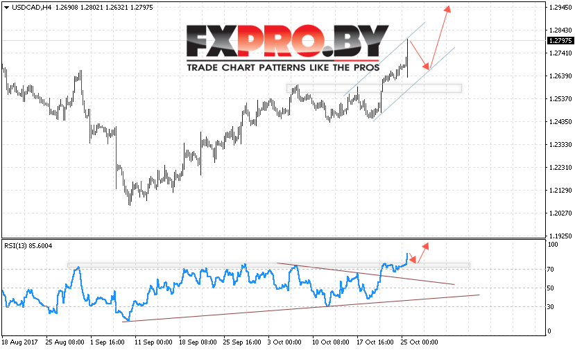 Таким образом, USD/CAD прогноз Канадский Доллар на 26 октября 2017 предполагает попытку теста нижней границы канала и продолжения роста пары выше уровня 1.2950, отменой варианта роста Канадского Доллара станет пробой уровня 1.2620, в этом случае стоит ожидать продолжения падения пары.
