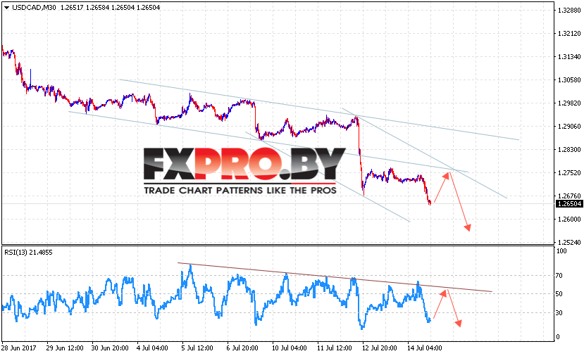 Таким образом, USD/CAD прогноз Канадского Доллара на 17 июля 2017 предполагает попытку коррекции в область верхней границы нисходящего канала на уровне 1.2750, откуда стоит ожидать продолжения падения ниже уровня 1.2580, отменой вступит пробой уровня 1.2780.