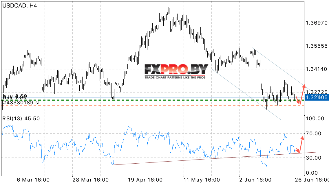 Таким образом, USD/CAD прогноз Канадского Доллара на 27 июня 2017 предполагает попытку теста уровня 1.3210, откуда стоит ожидать отскок и продолжение роста в область верхней границы нисходящего канала, отменой станет пробой уровня локального минимума.