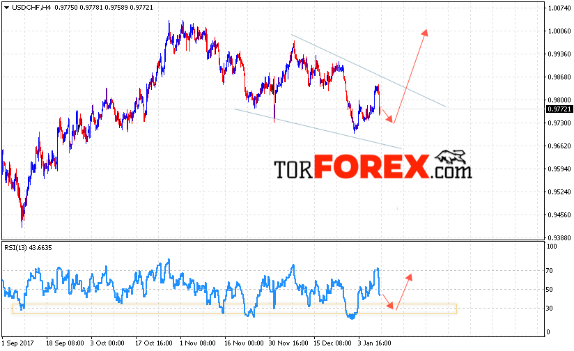 Таким образом, USD/CHF прогноз Доллар Франк на 11 января 2018 предполагает попытку теста уровня поддержки вблизи 0.9730 и продолжение роста пары USD/CHF с целью выше уровня 0.9980, дополнительным сигналом в пользу роста пары Доллар Франк выступит тест области поддержки на индикаторе относительной силы.