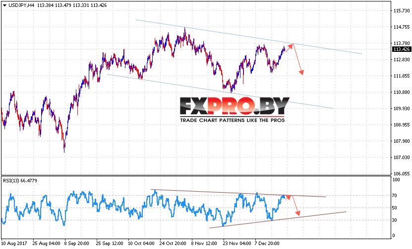 Таким образом, USD/JPY прогноз Доллар Иена на 22 декабря 2017 предполагает попытку теста уровня 113.80 и продолжения падения в область ниже 111.80, дополнительным сигналом в пользу снижения пары Доллар Иена выступит тест линии сопротивления на индикаторе относительной силы, отменой варианта падения USD/JPY станет пробой области 114.10.