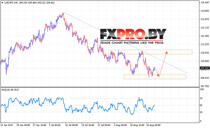 Таким образом, USD/JPY прогноз Доллар Иена на 23 августа 2017 предполагает попытку отскока от уровня поддержки и начала роста в область выше 110.80 в рамках начала отработки разворотной модели Двойное Дно.