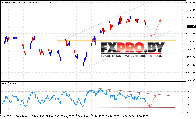 Таким образом, USD/JPY прогноз курса Доллара к Иене на 11 октября 2017 предполагает попытку снижения в область нижней границы канала вблизи уровня в рамках начала завершения формирования бычьей модели 5-0, откуда вновь стоит ожидать продолжения роста пары выше уровня 113.90.