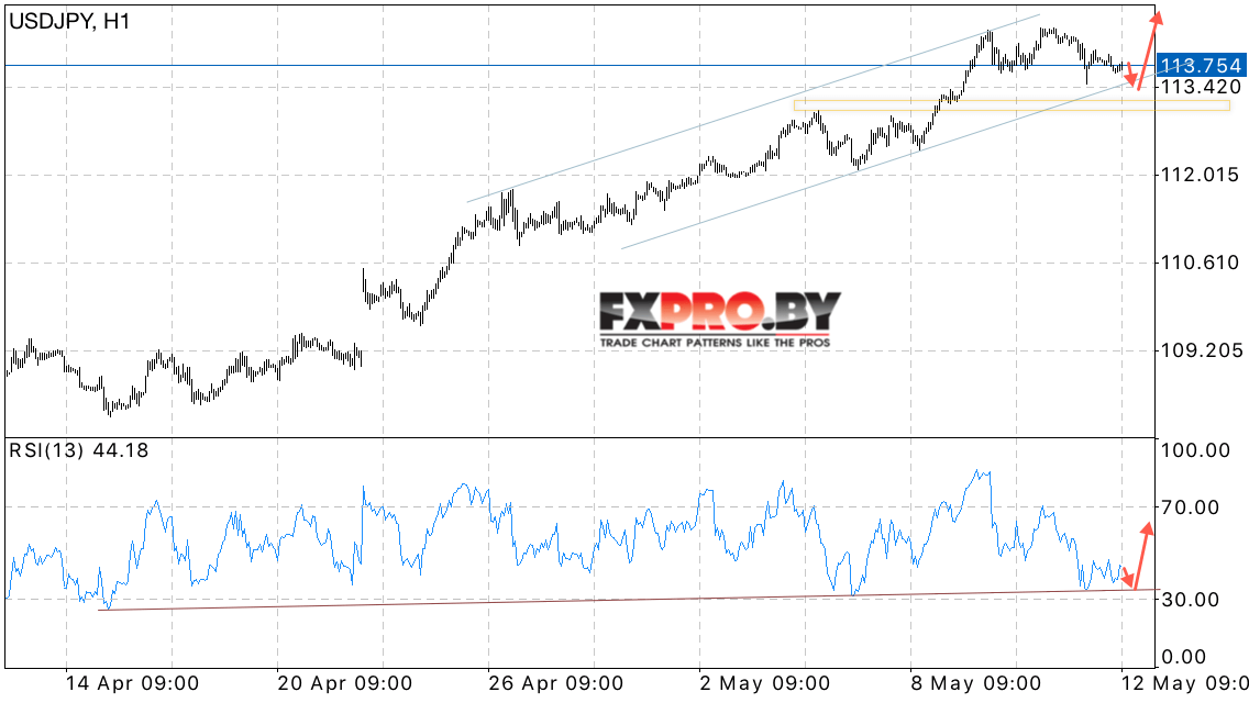 Отменой варианта роста пары станет падение и пробой уровня 113.00, что укажет на падение в область ниже уровня 112.50. Ожидать ускорения роста стоит с пробоем области локального максимума.