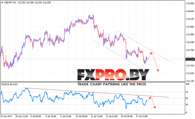 Таким образом, USD/JPY прогноз курса Доллара к Иене на 19 июля 2017 предполагает попытку теста верхней границы канала на уровне 112.50, откуда стоит ожидать продолжения снижения с потенциальной целью на уровне ниже области 111.50, отменой выступит пробой уровня 112.80.