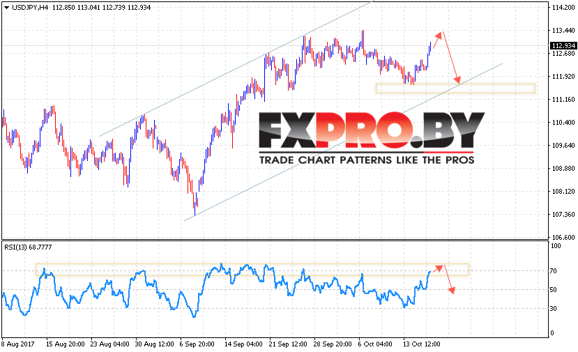 Таким образом, USD/JPY прогноз курса Доллара к Иене на 19 октября 2017 предполагает попытку теста уровня сопротивления вблизи области 113.45, откуда стоит ожидать снижения котировок в область ниже уровня 111.05, отменой варианта падения станет пробой области 113.70.