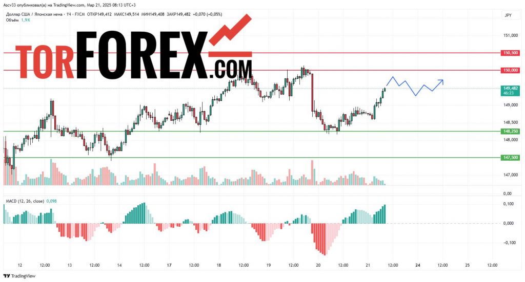 Технические индикаторы указывают на возможную консолидацию в текущем диапазоне. Пробитие 150,00 вверх может стать сигналом для продолжения роста, тогда как снижение ниже 148,25 подтвердит вероятность разворота.