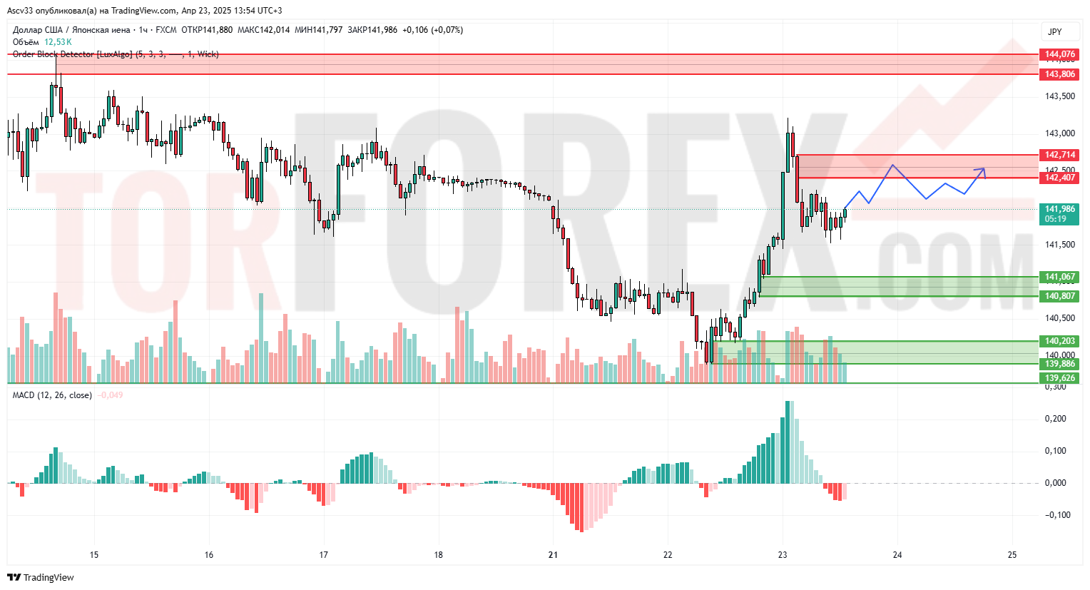 Ожидается движение в диапазоне 141.90–142.70 с возможной попыткой пробоя вверх. При отказе от роста вероятен откат к 141.00–140.80.