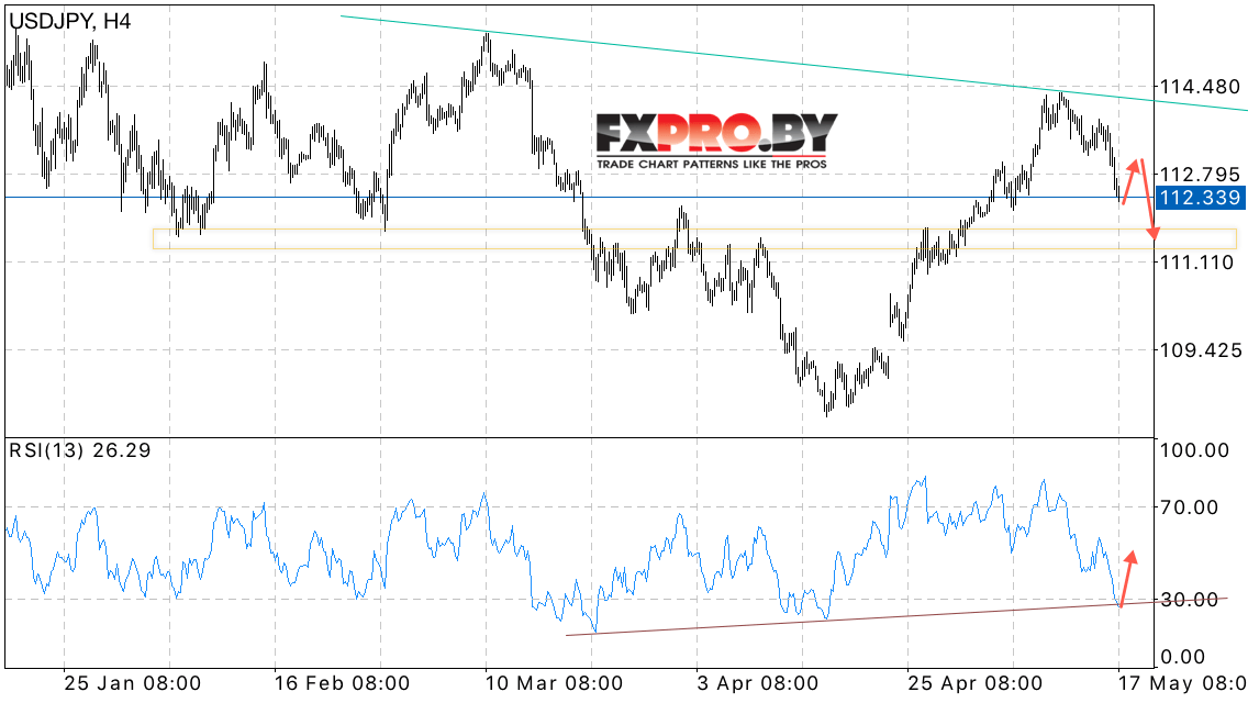 Таким образом, USD/JPY прогноз Японская Иена на 18 мая 2017 предполагает попытку теста уровня 112.90, откуда стоит ожидать падение в область 111.20, где пара завершит формирование разворотной Форекс модели и продолжит развитие восходящей тенденции.