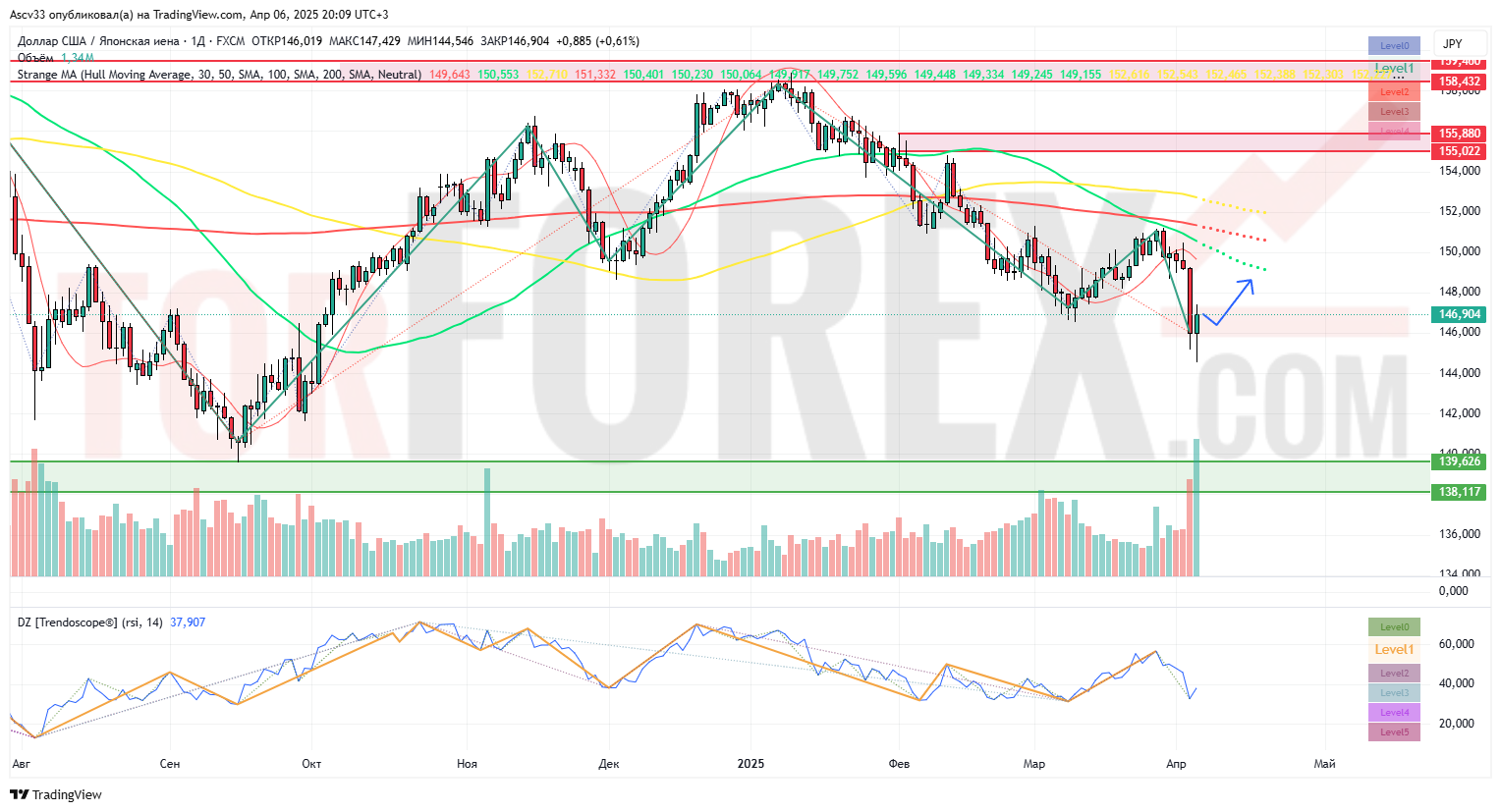 - Лонг (коррекционно): при удержании 146.50 — цели 149.50 / 150.00