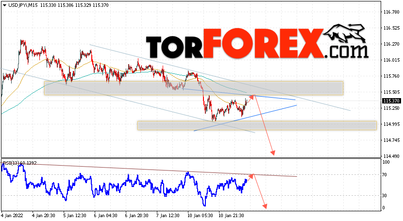 Таким образом, USD/JPY прогноз Доллар Иена на 12 января 2022 предполагает попытку теста области сопротивления вблизи уровня 115.50. Затем, продолжение падения котировок в область ниже уровня 114.50. В пользу снижения пары выступит тест линии тренда на индикаторе относительной силы. Отменой варианта падения станет сильный рост и пробой области 115.95. Это укажет на пробой уровня сопротивления и продолжение роста по паре с потенциальной целью выше уровня 117.45.