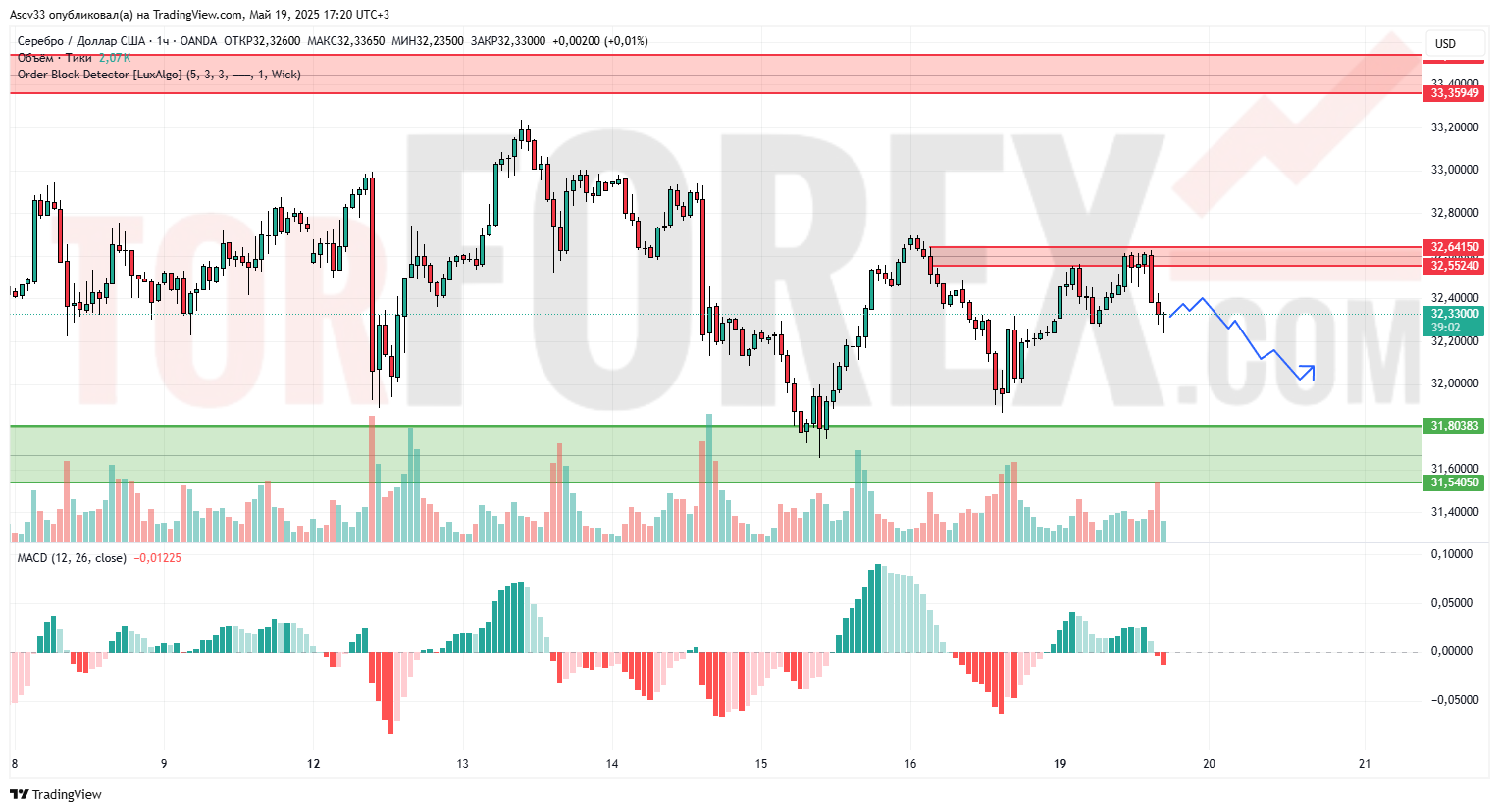 Прогноз Серебро Доллар XAG/USD на 20 мая 2025