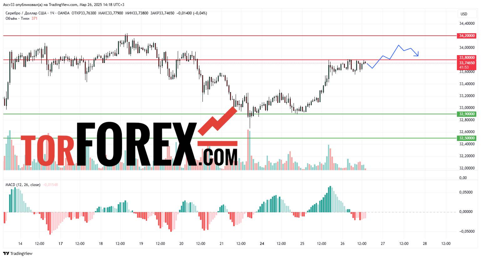 • $33,80 — преодоление этой отметки может запустить новый виток роста, открывая дорогу к $34,20;