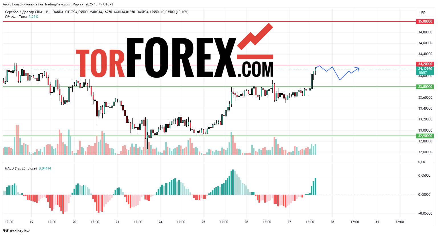 Прогноз Серебро Доллар XAG/USD на 28 марта 2025