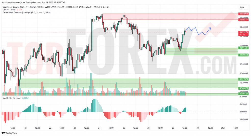 При сохранении активности покупателей возможен тест и пробой зоны 33.60 с целью движения к 34.00. Отбой от сопротивления приведёт к ретесту 32.95–32.80.